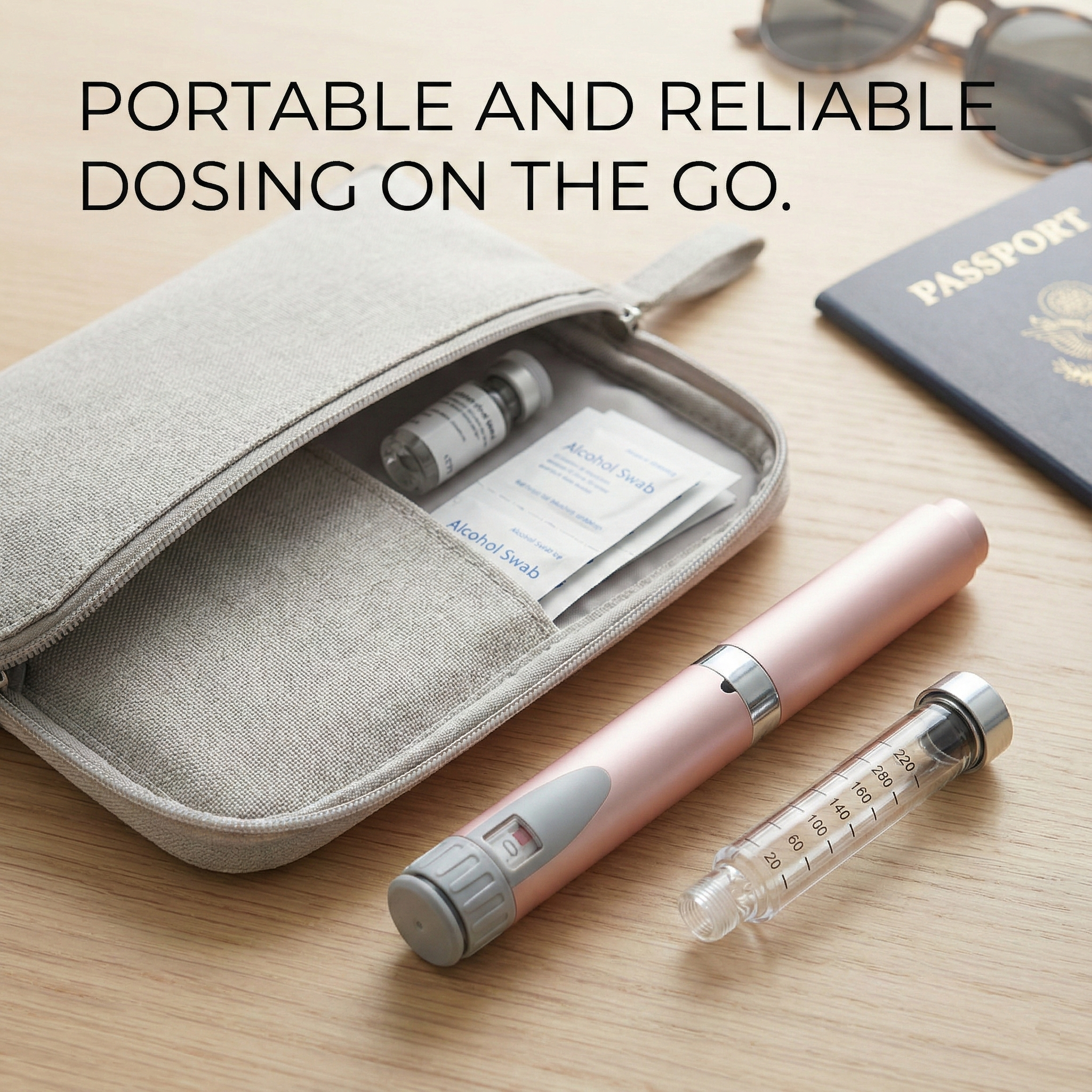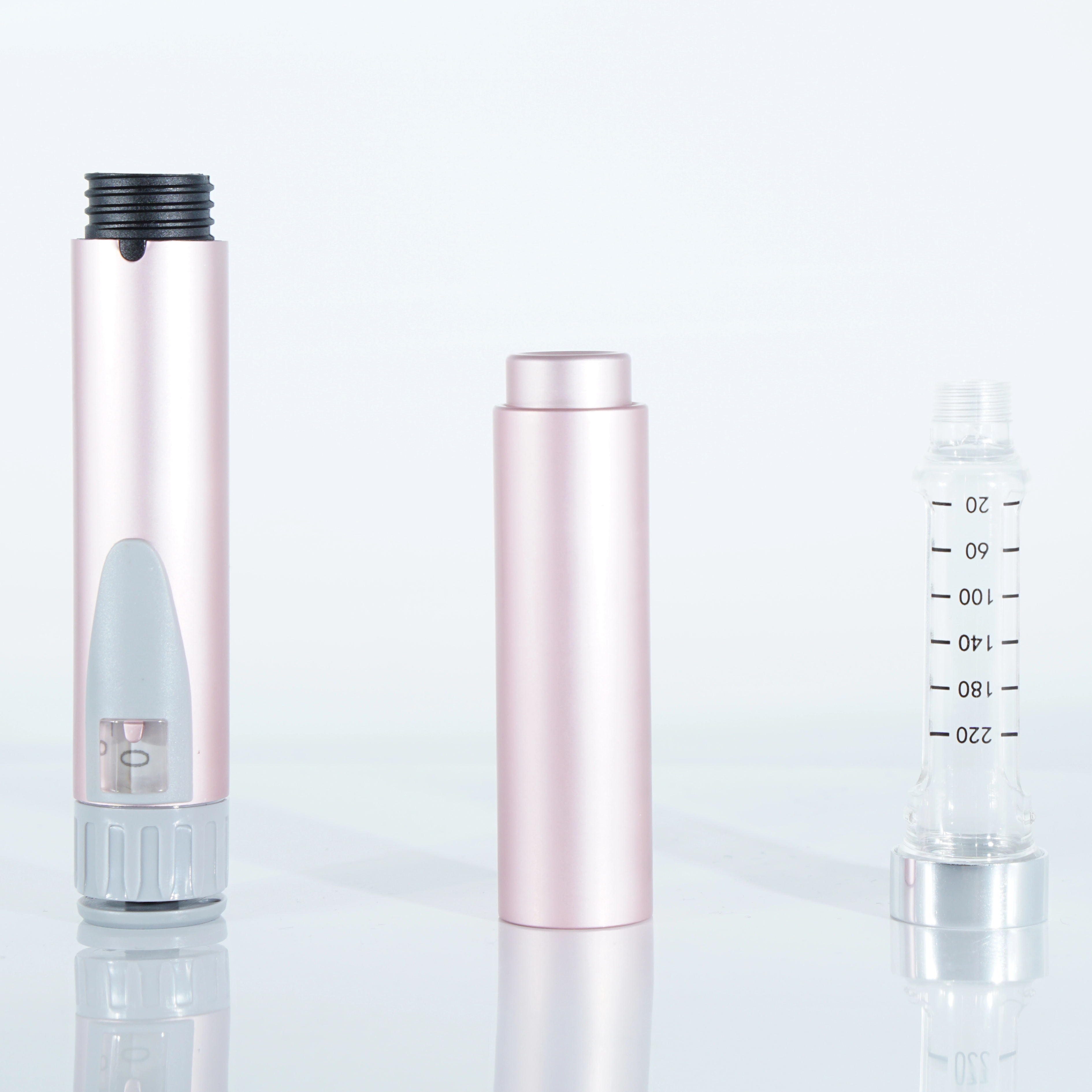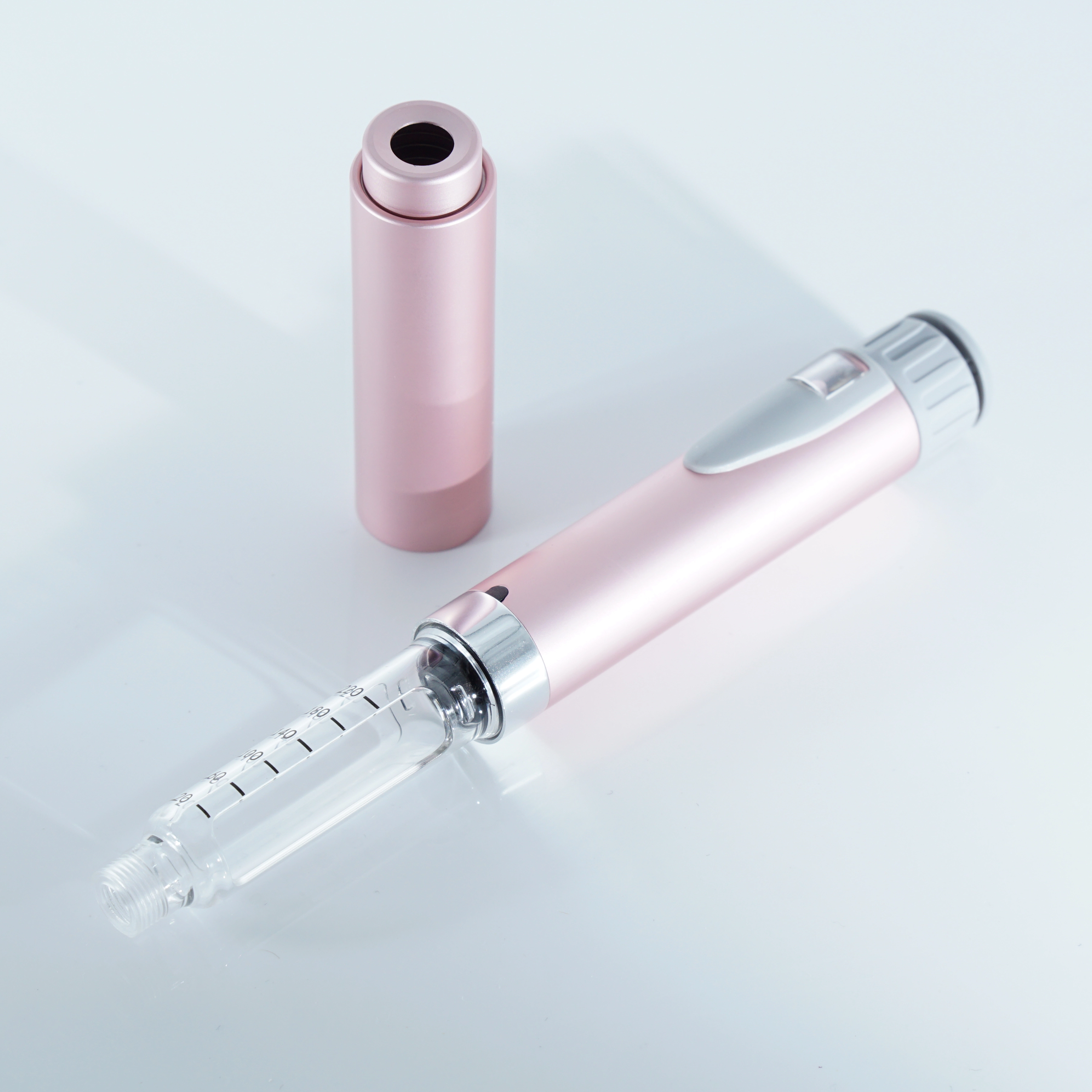 Hecho a partir de aluminio anodizado duradero con un acabado rosa refinado, este bolígrafo es ideal para marcas y clínicas que buscan un dispositivo reutilizable que combina un rendimiento de grado médico con una elegante estética. El diseño garantiza la marcación de dosis suave , la inyección confiable y la compatibilidad con los cartuchos estándar de 3ML.