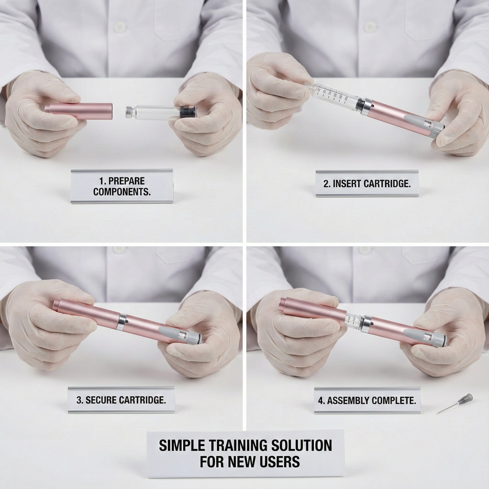 Ya sea que esté abordando los tratamientos de adelgazamiento , de la gestión de la diabetes o los regímenes terapéuticos personalizados, este inyector es totalmente compatible con los sistemas de mezcla de cartucho (jeringa de 2 partes) y puede integrarse con máquinas de ensamblaje de inyectores automáticos para una producción escalable.