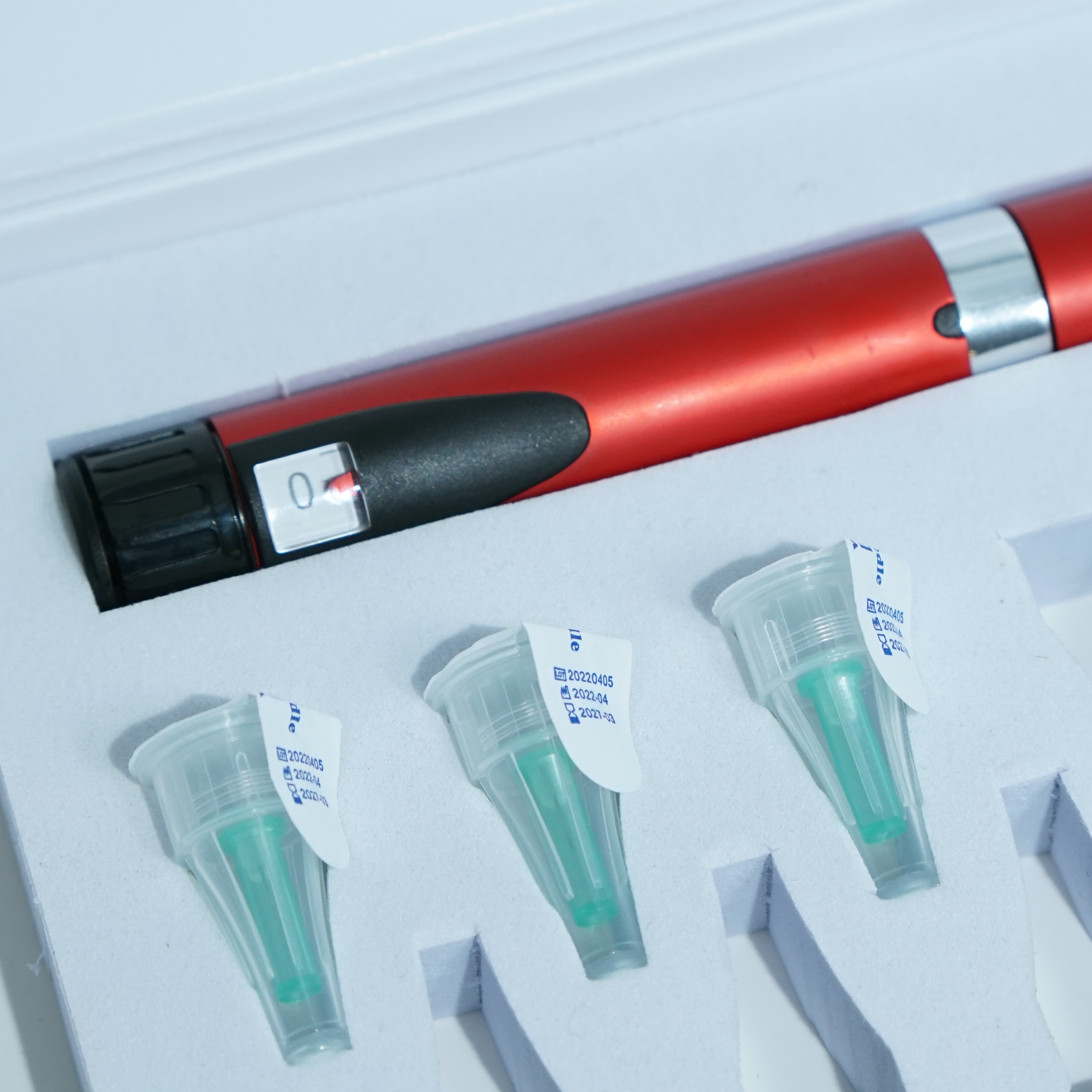 El diseño admite un sistema de inyección todo en uno , lo que permite empaquetar la pluma de inyección, los cartuchos y las agujas de manera clara, organizada y compatible.