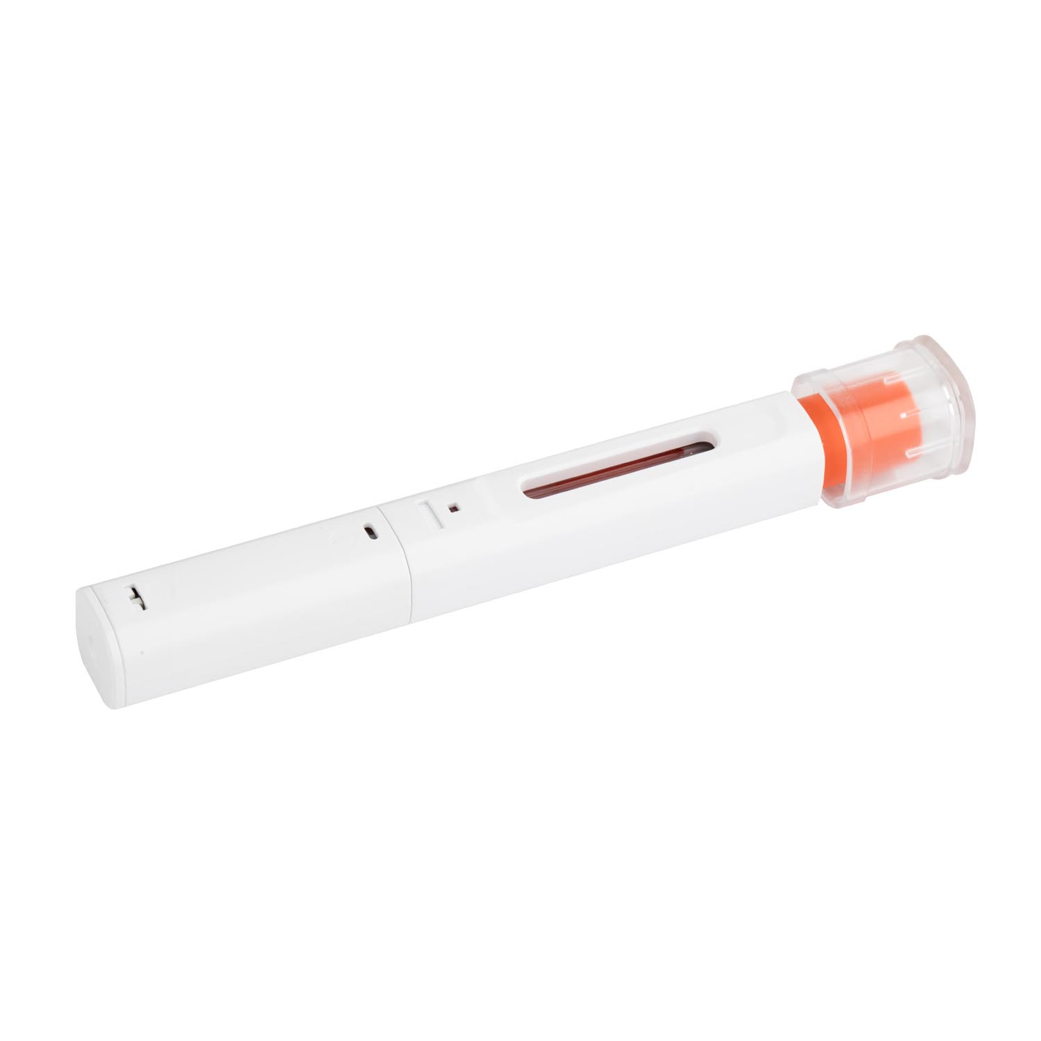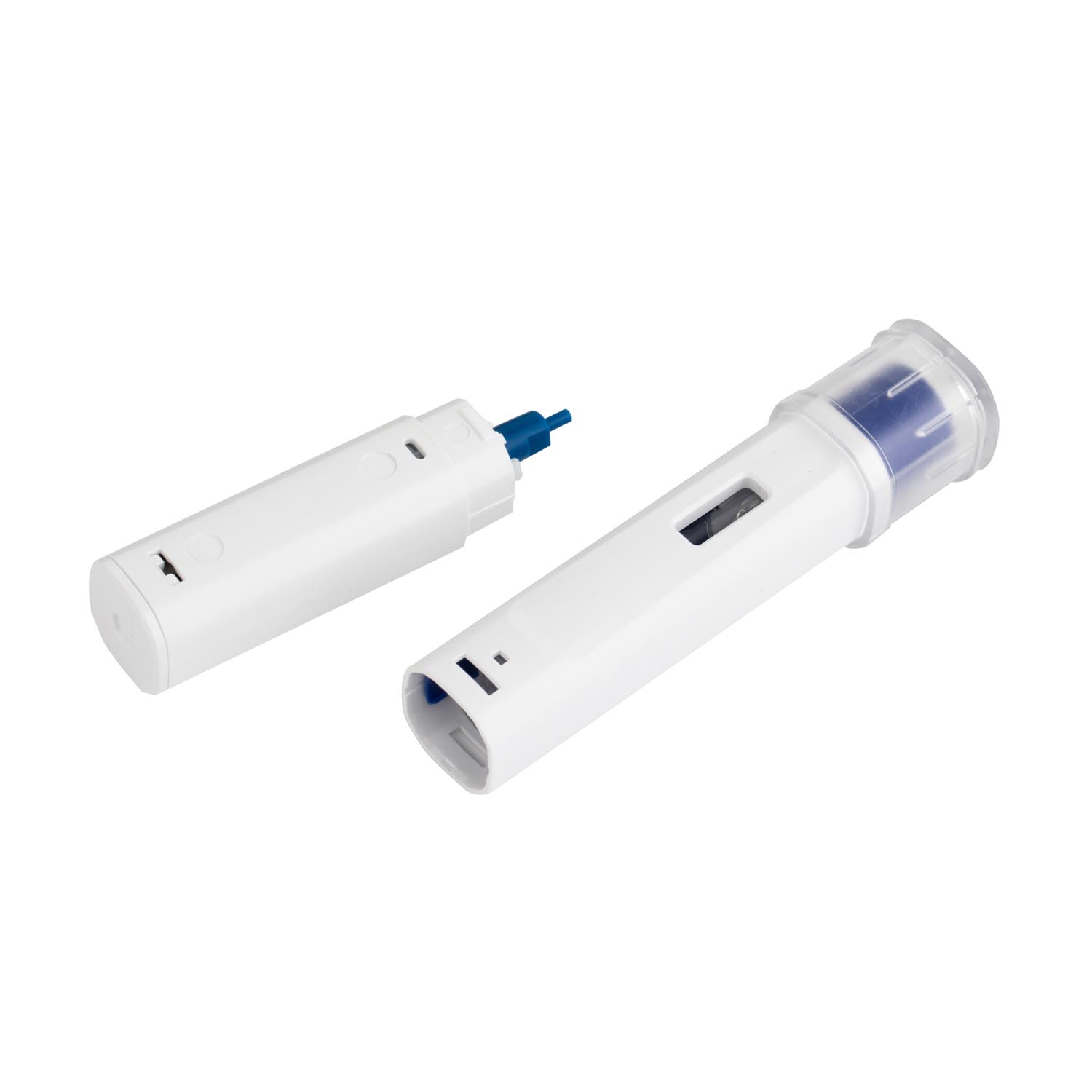 Esta pluma de inyección está construida con una carcasa blanca limpia de grado médico , combinada con tres colores distintos de émbolo (azul, verde, naranja) para diferenciar fácilmente los medicamentos. El dispositivo incluye una tapa de bloqueo transparente que estabiliza el PFS durante el uso, evitando que se doble o se resbale accidentalmente.